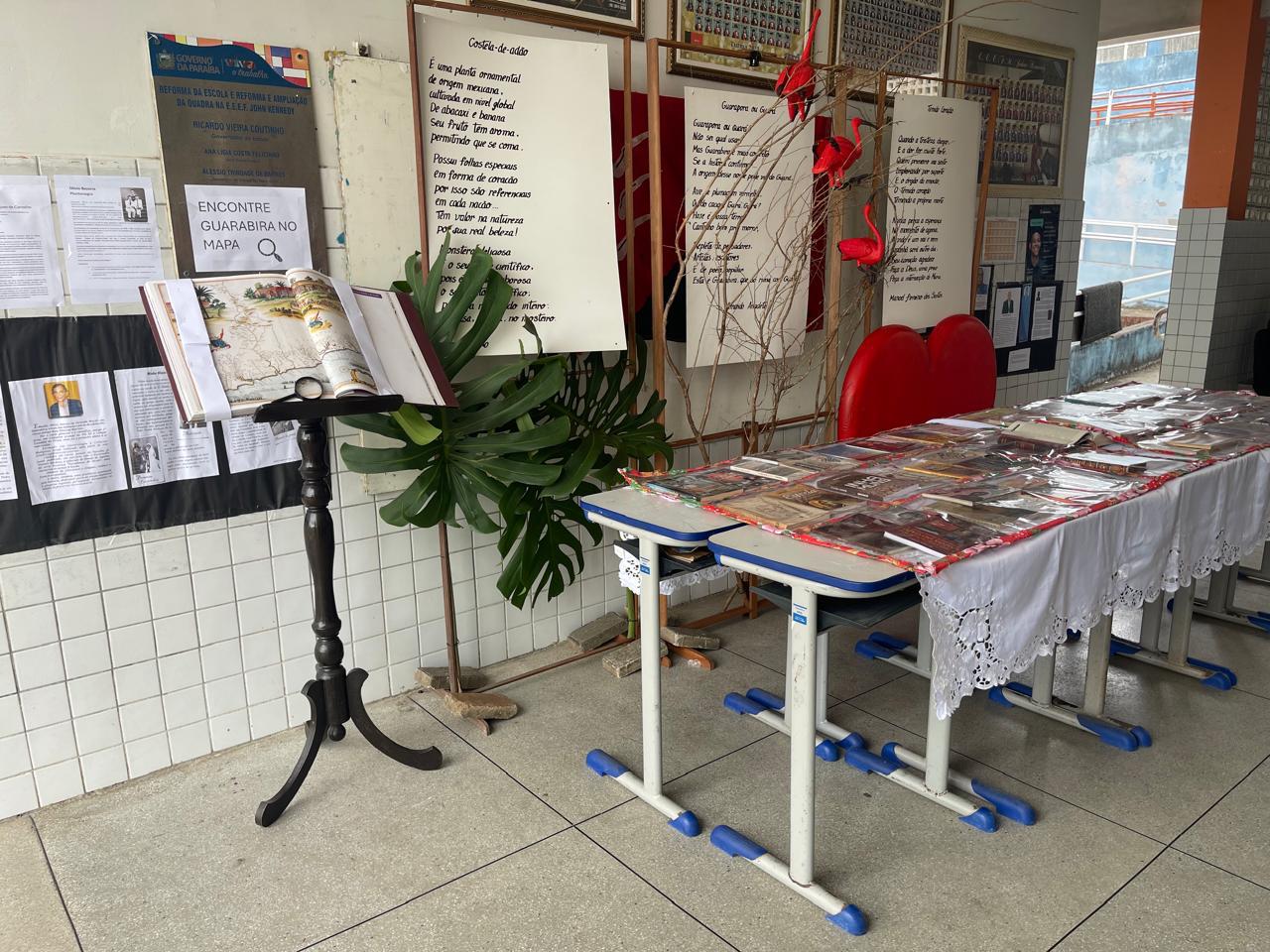 Mais uma ação do Projeto Intercâmbio Nordeste-Sul: conexões na poesia popular, de autoria da Professora Elciane de Lima Paulino foi realizada na Escola Estadual de Ensino Médio John Kennedy, no dia 28 de novembro deste ano, com a parceria do pesquisador José Paulo Ribeiro e com o apoio da comunidade escolar. O objetivo da exposição consistiu em expor as obras dos escritores da cidade de Guarabira não apenas para os estudantes, mas também para professores, pais, convidados, isto é, toda a comunidade. Além disso, a importante obra cartográfica, que aponta para a origem do nome da cidade “Guarabira”, intitulada O Tesouro dos Mapas: A Cartografia na Formação do Brasil foi exposta, especificamente, na página que apresenta o mapa da Paraíba, elaborado em 1640 pelo naturalista alemão Georg Markgraf – que convidado por Maurício de Nassau ficou no Brasil entre 1638 e 1644; e enquanto permaneceu no Nordeste, realizou estudos sobre a fauna e a flora brasileiras, bem como construiu o primeiro observatório astronômico do Novo Mundo (informações contidas na obra)*. É importante destacar que, como ação de um projeto de intercâmbio, a exposição teve o intuito de chegar na região Sul, em todo o país e alcançar o globo, através desta publicação no <canalbuskas.com>, fazendo-se uso desta ferramenta tecnológica para conexão de saberes e divulgação da cultura local.