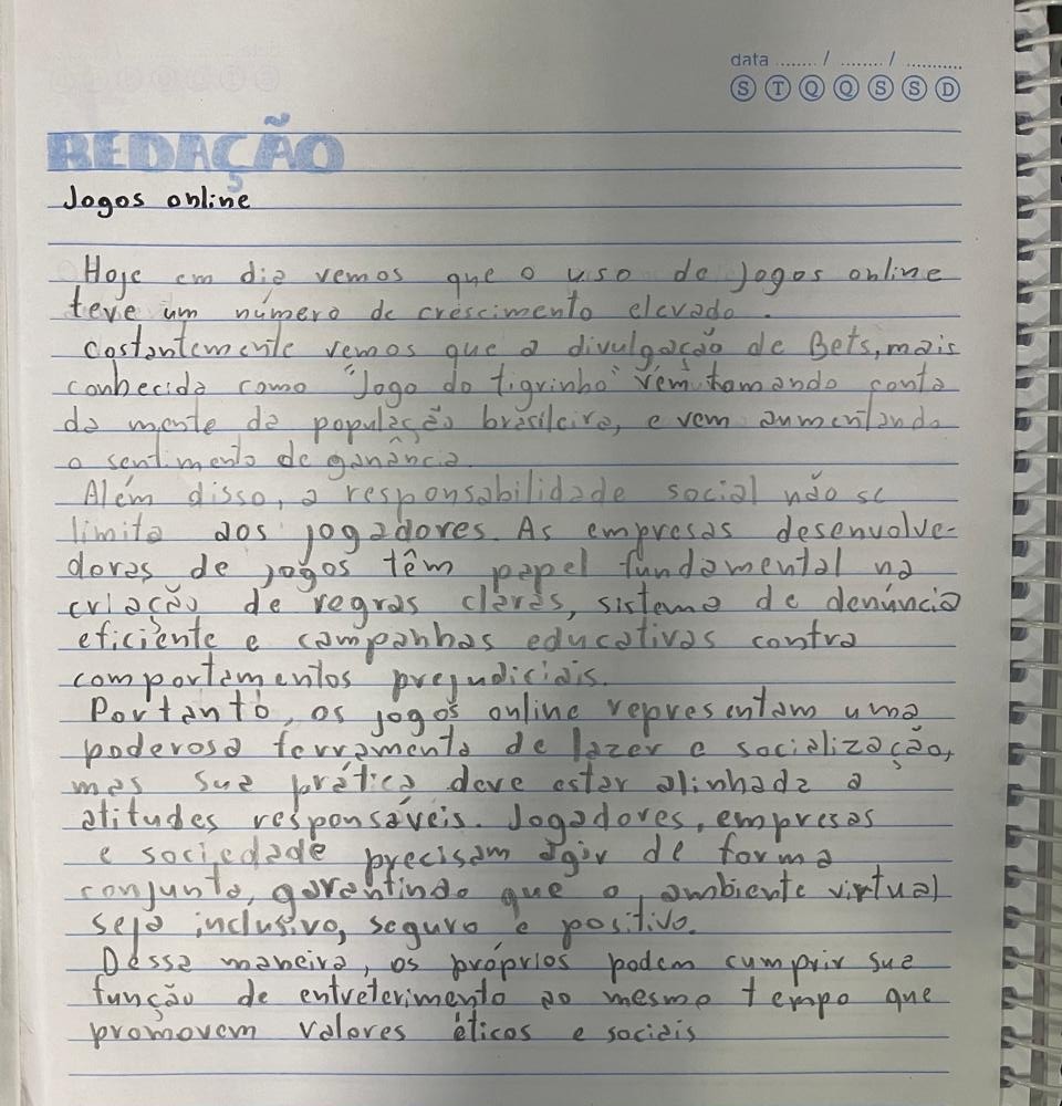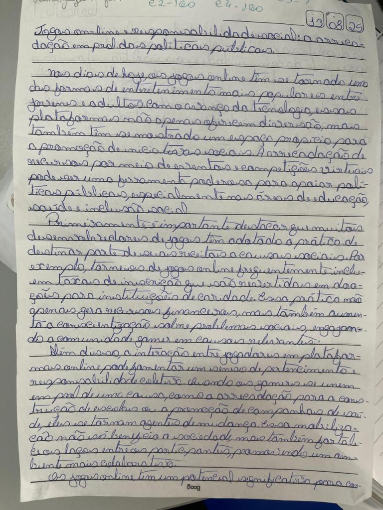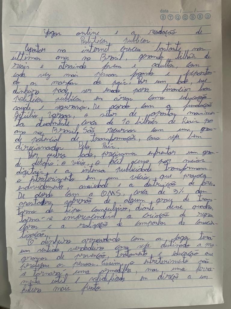 Redação produzida pelo estudante Paulo Germano, do 3º Ano do Ensino Médio, durante o Projeto A escrita dialética em plataformas digitais, durante o ano letivo 2025.