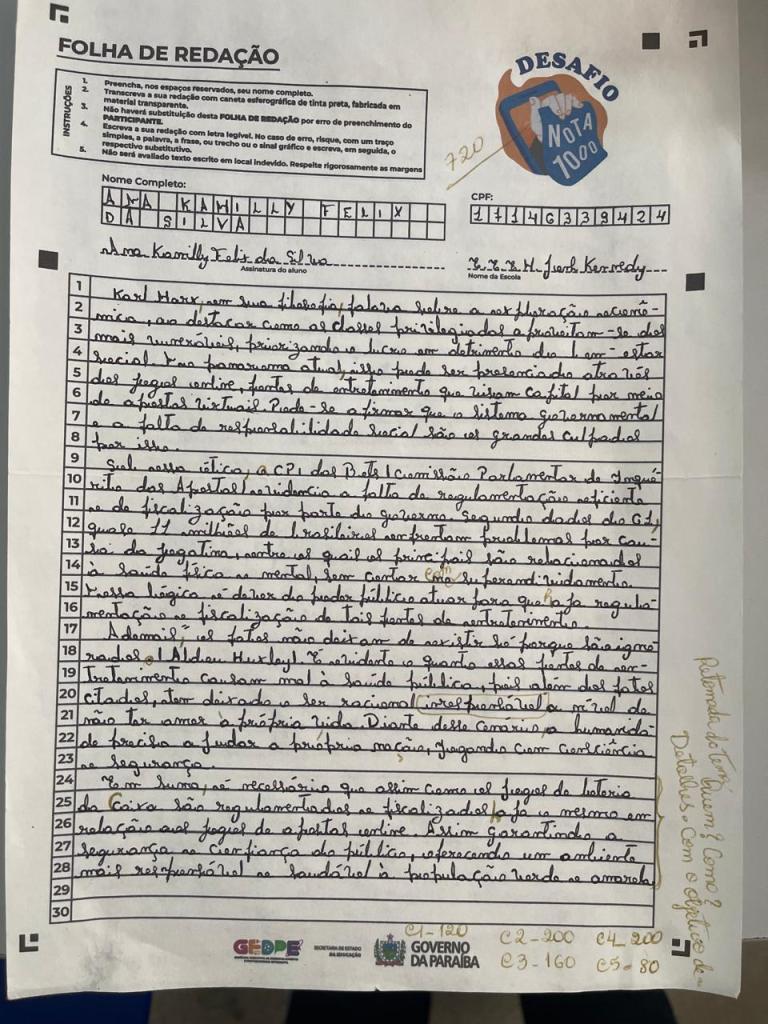 Redação produzida pela estudante Ana Kamilly Felix da Silva, do 3º Ano do Ensino Médio, durante o Projeto A escrita dialética em plataformas digitais, durante o ano letivo 2025.
