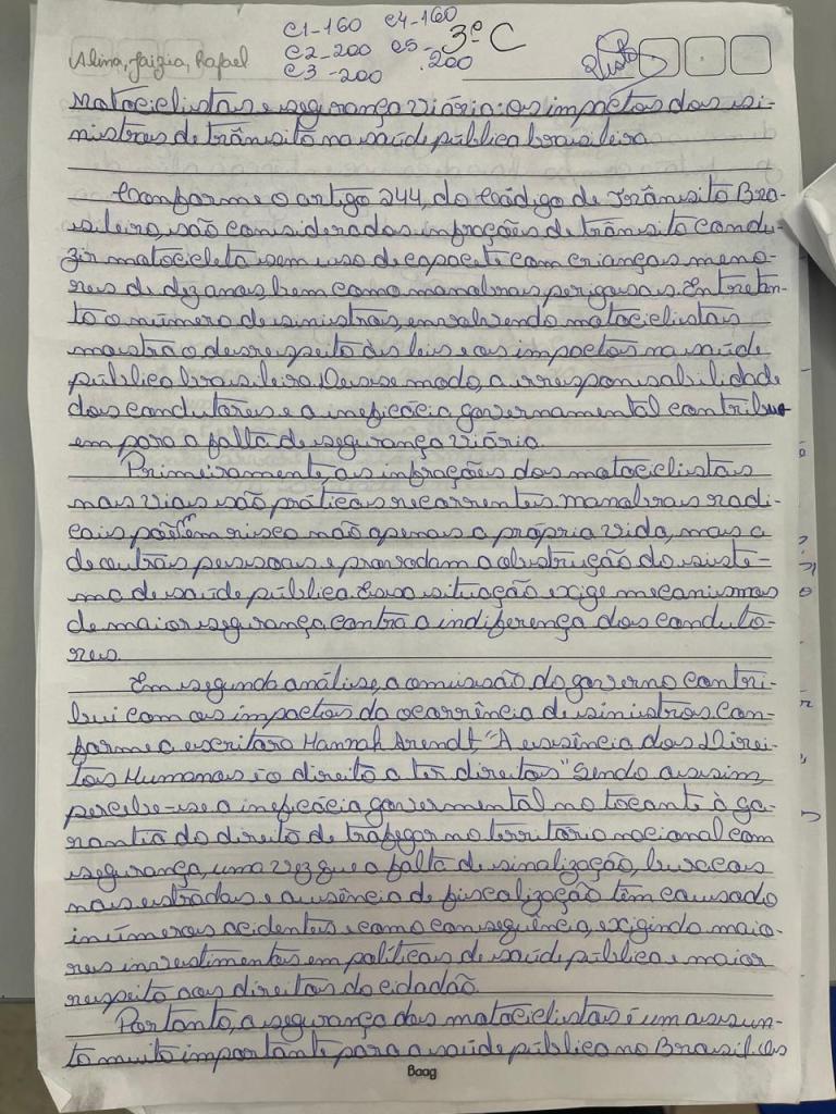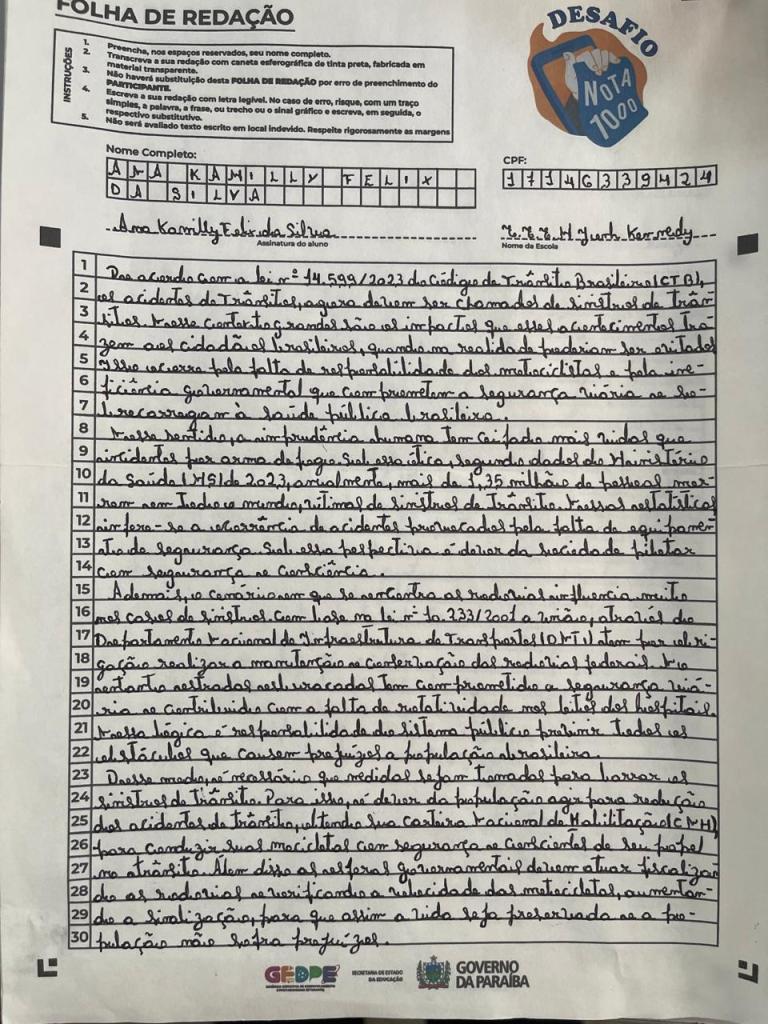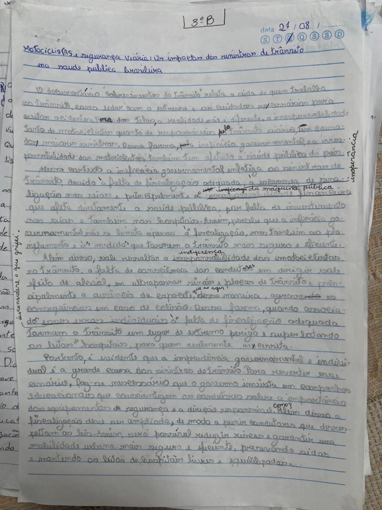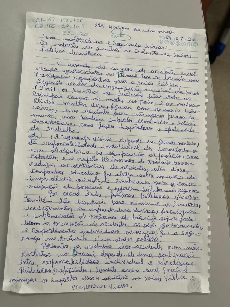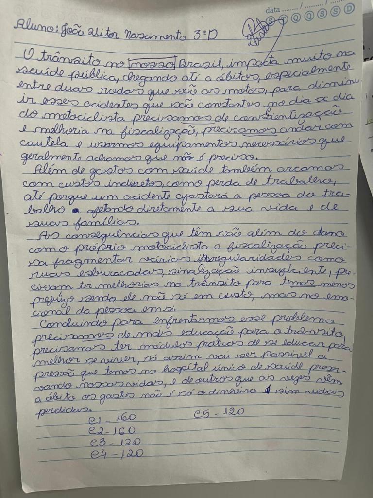 Redação produzida pelo estudante Nathan Sefanyah de Andrade Sá, do 3º Ano do Ensino Médio, durante o Projeto A escrita dialética em plataformas digitais, durante o ano letivo 2025.