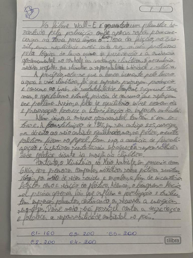 Redação produzida pela estudante Emilly Vitória Marques Paz da Silva, do 3º Ano do Ensino Médio, durante o Projeto A escrita dialética em plataformas digitais, durante o ano letivo 2025.