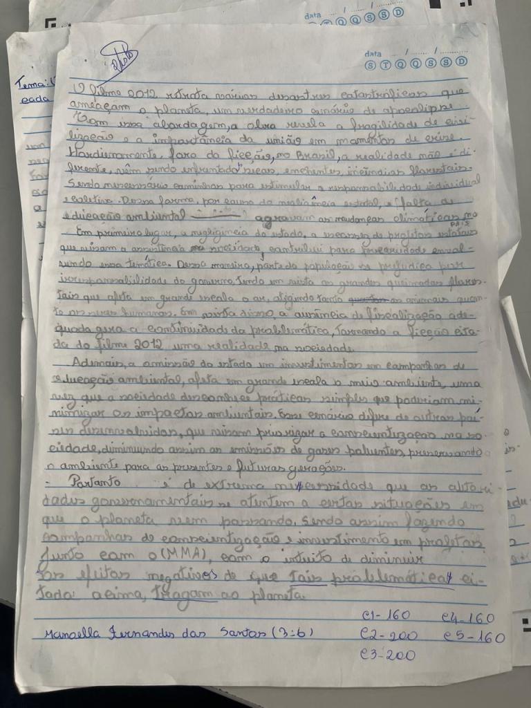 Redação produzida pela estudante Manoella Fernandes dos Santos, do 3º Ano do Ensino Médio, durante o Projeto A escrita dialética em plataformas digitais, durante o ano letivo 2025.