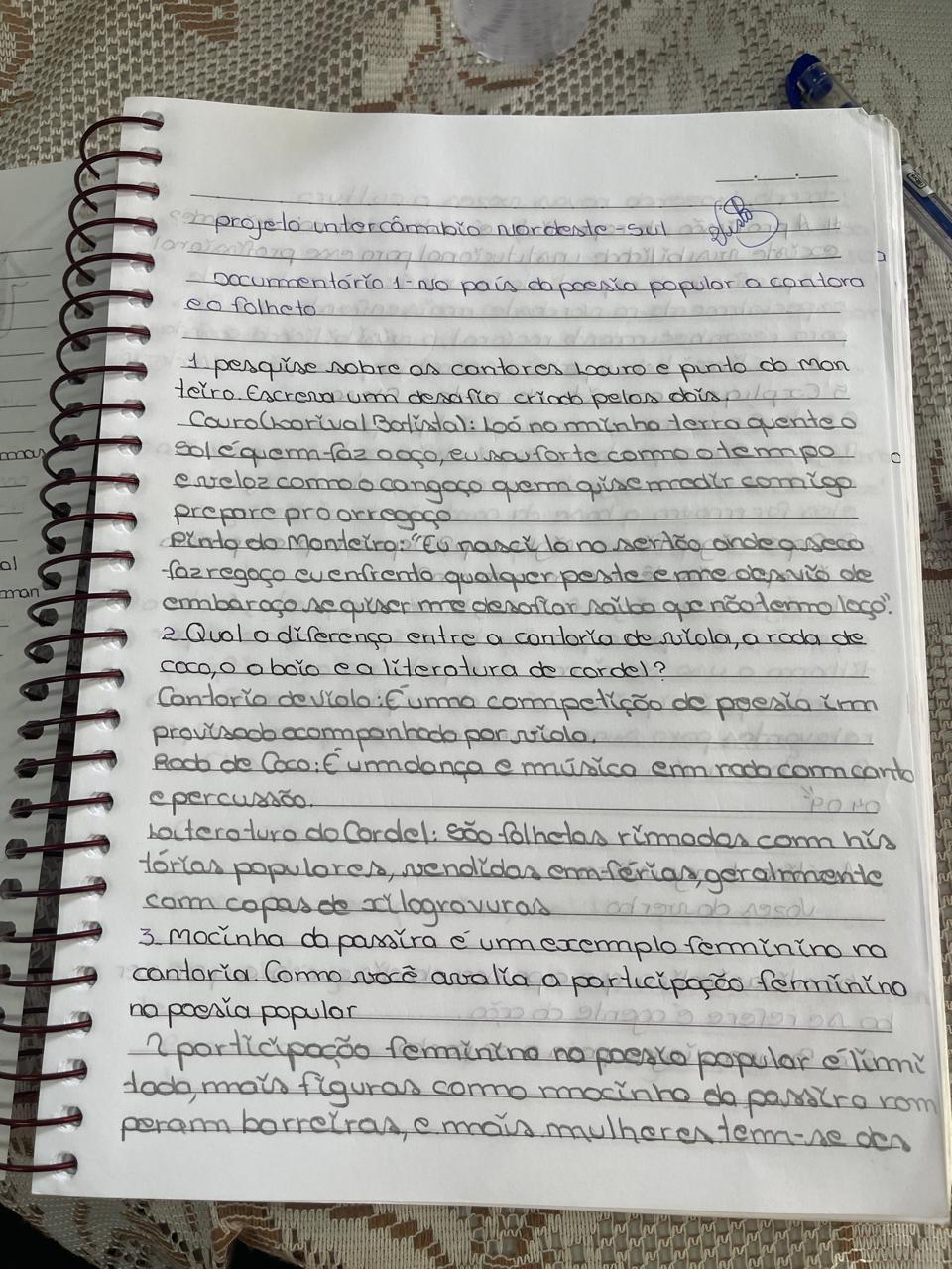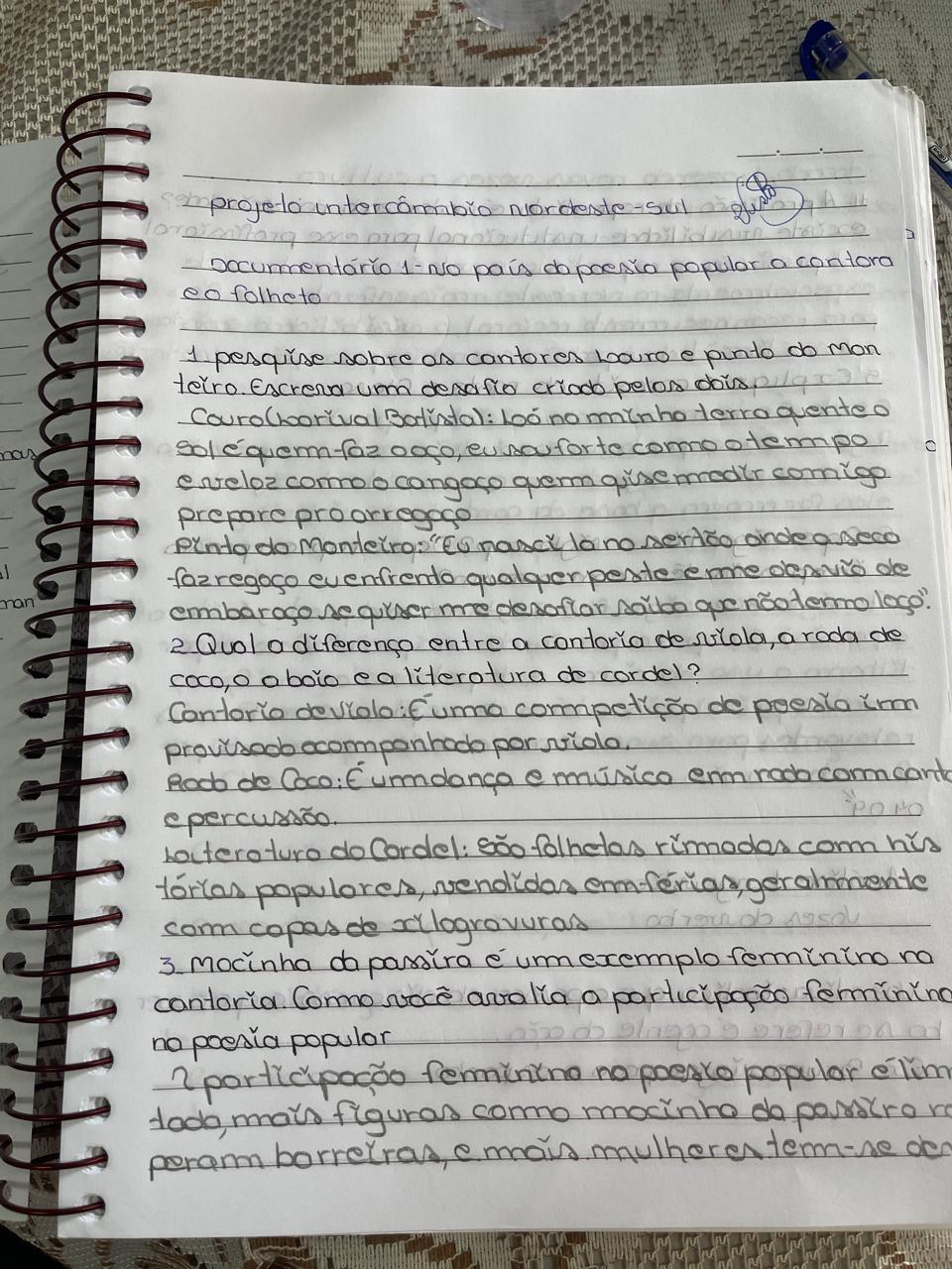 Bom dia, muito boas as aulas da cultura nordestina, muito interessante e legal. (Joāo Vitor- 3° H)