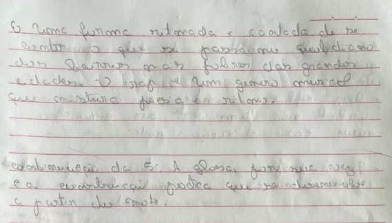 Num segundo momento, os alunos conheceram as crianças do Centro de Educação Infantil, através de relatórios impressos, os quais traziam os conhecimentos construídos no projeto das professoras Nadine, Kelly e Ana Paula. A experiência foi interessante, sentiram-se num processo de conhecimento do outro, que é real, mas por meio de imagens e relatos escritos pelo olhar das professoras. E planejaram como escreveriam seus poemas, conectando os elementos culturais do Sul apreendidos na leitura do livreto e discutidos em sala de aula, as características de seus personagens ou eu lírico por meio do que captaram sobre as imagens e as ações das crianças nos relatórios.